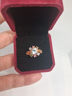 Sparkle Gemstone Multi Saphires 2mm White Topaz 8mm Top Ring 13mm Size 7US S925 Rose GPD $35San Jose, CA