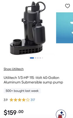 Utilitech 1/3-HP 115 -Volt 40-Gallon Aluminum Submersible sump pump$75North Las Vegas, NV