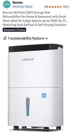 Kesnos 150 Pints 2025 Energy Star Dehumidifier for Home & Basement with Drain Hose, Ideal for Large Spaces up to 7,500 Sq. Ft., Featuring Auto Defrost$200North Las Vegas, NV