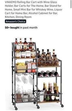 VINAEMO Rolling Bar Cart with Wine Glass Holder, Bar Carts for The Home, Bar Stand for Home, Small Mini Bar for Whiskey Wine, Liquor Cart for Home Bar$40North Las Vegas, NV