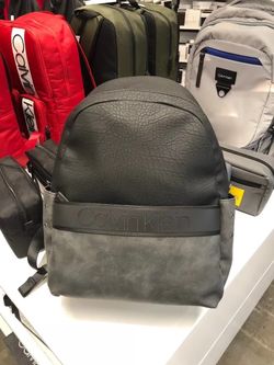 Brand new with tag Calvin Klein men black/gray man made durable faux leather backpack Size 11x7x18 inches$100Arcadia, CA