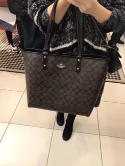 NWT Coach Signature Reversible Tote Bag 36658 PVC Black Brown goldtone Hardware$169Arcadia, CA
