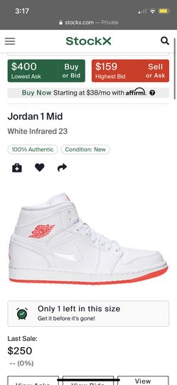Brand New Jordan 1 White Infrared 23 *RARE* For Sale DS Size 11$240Castro Valley, CA