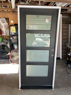 New Entry Door 42” Wide Modern Style Frosted Glass Fiberglass $890San Bernardino, CA