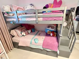 ✨ Unisex Solid Wood Twin-over-Twin Bunk Bed with Storage Grey ✨$500Hialeah, FL