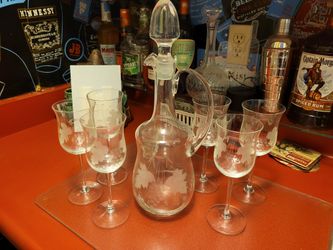 Crystal Etched Wine Decanter And6 Glasses $75Sun City, AZ