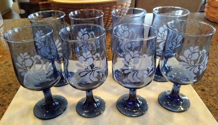Vintage Pfaltzgraff Folk Art Blue Etched w/Bird Water Glasses Set of 8$45Olathe, KS
