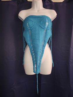 Knitted Blue Medium Asymmetrical Crop Tube Top$14El Monte, CA