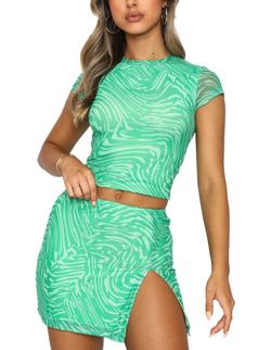 White Fox Boutique Medium/Large Two Piece Green Swirl Shirt & Skirt$35El Monte, CA
