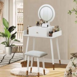 White Makeup Vanity Table Set with Stool, Vanity Table with Mirror and Light Power Outlet, Adjustable$45Los Angeles, CA