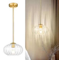 Modern Pendant Light Fixtures for Kitchen Island, Farmhouse Striped Glass Pendant Lighting with Gold Socket, Stylish Ceiling Light for Dining Room and$25Henderson, NV