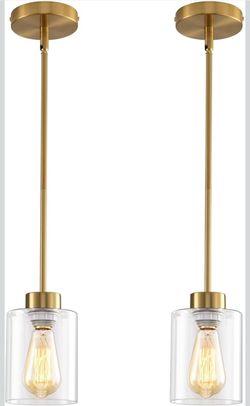 Brass Gold Pendant Light Fixture Set of 2 Modern Cylinder Farmhouse Hanging Light Fixture Pendant Lights, Kitchen Island, Bathroom Light Fixture, Clea$30Las Vegas, NV