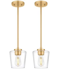Pendant Lights 2 Pack 6" Brushed Gold Modern AD-22004-1P2-GD-C Kitchen Pendant Lighting, Kitchen Island, Clear Glass Shade, Hanging Lights Fixtures, O$35Las Vegas, NV