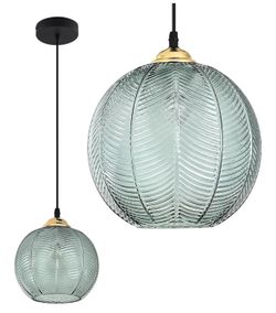 KCO Lighting Single Green Glass Pendant Light Large Globe Pendant Lighting Nordic Ribbed Ceiling Hanging Chandelier Light Vintage Dining Room Kitchen $25Las Vegas, NV