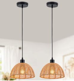 Boho Rattan Pendant Lights Vintage 2-Pack Farmhouse 9.84" Dome Hand Woven Bamboo Pendant Light Fixture Retro Boho Pendant Lighting for Kitchen Island,$30Las Vegas, NV