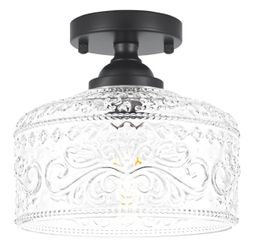 Small Semi Flush Mount Ceiling Light Fixture, Vintage Matte Black Close to Ceiling Lighting with Etched Glass Shade for Hallway, Kitchen, Entryway (Re$20Henderson, NV