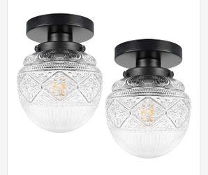 APOTO 2 Pack Semi Flush Mount Ceiling Light Fixture Black,Small Hallway Light Fixtures Ceiling,Vintage Globe Glass Close To Ceiling Lights,Chandelier $20Las Vegas, NV