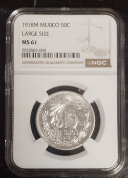 1918 - Mexico Silver 50 Centavos. ***RARE***$400Riverside, CA
