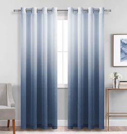 Blue Ombre Sheer Curtains Set Of 2 Panels Faux Linen Grommet Top Window Curtains 52 X 84$20San Diego, CA