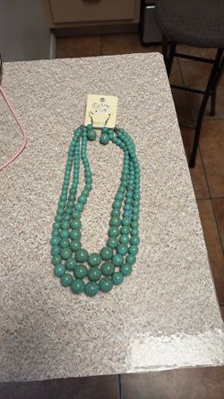 NEW,, Turquoise Color Three Strings Necklace With Matching Hanging Earrings$7El Paso, TX