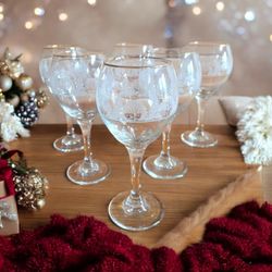 🎄7 Libby Arbys Etched Christmas Winter Scene Wine Glasses Gold Rimmed 🌲❄️$70Duncanville, TX