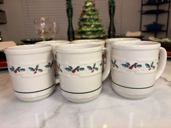 🎄 6 Longaberger Pottery Christmas Holiday Holly Berry Woven Traditions Coffee Mug ☕️ $15Duncanville, TX