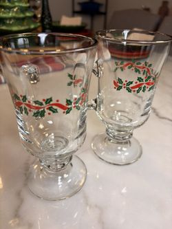 🎄 4 Libbey Irish Coffee Mug - Green & Red Holly - Red Ribbon ❤️💚$25Duncanville, TX