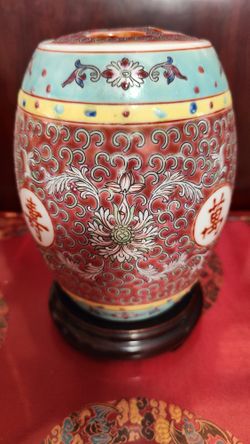 Vintage Chinese Famille Rose Porcelain Red Ginger Jar with Wood Stand$50Los Angeles, CA
