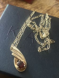 10 karat gold necklace with a 14 karat pendant with a ruby top lime stone$600Guilford, NY