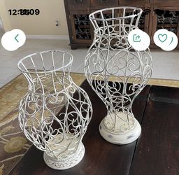 set of 2 off white metal urns / vases / planters 18” & 15” $35Wellington, FL