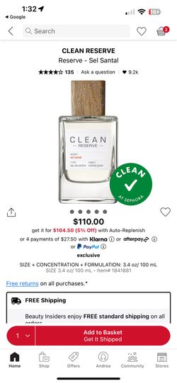 Clean Reserve Sel Santal Perfume$86San Diego, CA