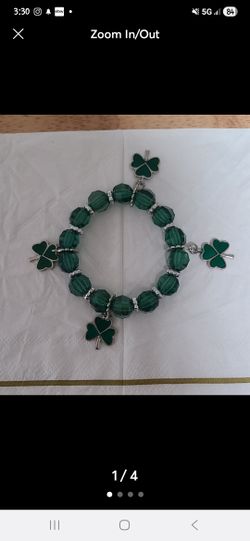 Stretch Bracelet with green & silver Beads Clover Charms$6Mount Royal, NJ