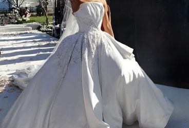 Luxury Custom Michael Costello Couture Ball Gown Wedding Dress w/ Hoop Skirt & Cathedral Veil$700Whittier, CA