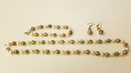Freshwater Pearl and Embossed Bead Jewelry Set$40New York, NY