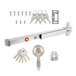 IRONWALLS Push Bar Panic Exit Device With Alarm & Exterior Lever, 70cm/27.5” Silver