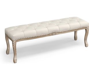 Bedroom Bench, French Vintage Tufted Entryway 52.5" Carving Upholstered End of Bed Bench with Distressed Wood Legs, Linen Ottoman Seat for Living Room$80Victorville, CA