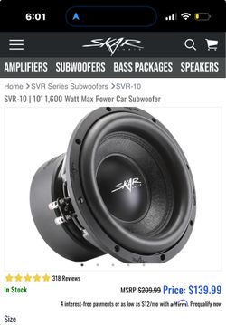 Brand New 10” Skar Subs 1600 Watt Peak$220Norcross, GA