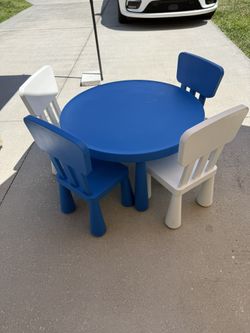 IKEA MAMMUT Blue Children's Table and 4 Chairs Set Kids Playroom Indoor Outdoor$65Windermere, FL