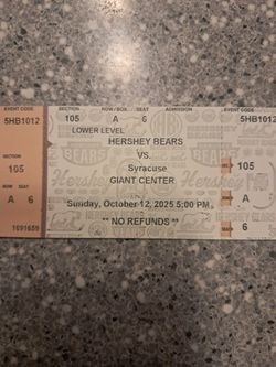 10_13 10_19 10_20 10__13 30 11_2 11_3 2 Hershey Bears Seats 117 F $60Palmyra, PA
