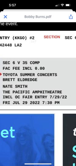 Bret Eldridge Tickets (2)$0Ramona, CA