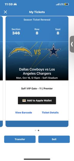 Dallas Cowboys Vs Los Angeles Chargers $300Rancho Cucamonga, CA