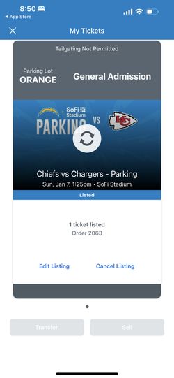 Kansas Cheifs Vs Los Angeles Chargers Orange Parking Pass$100Rancho Cucamonga, CA
