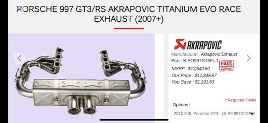 Porsche 911/997 GT3 & RS Akrapovic Titanium Evolution Race Exhaust Header -- New$2,499Costa Mesa, CA
