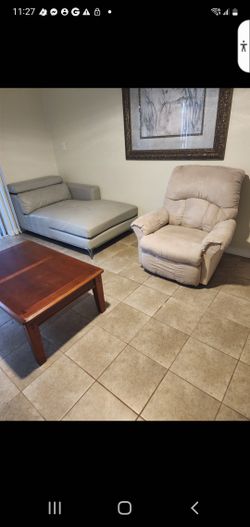 Cream colored sofa coffee table and a recliner$1Palm Harbor, FL