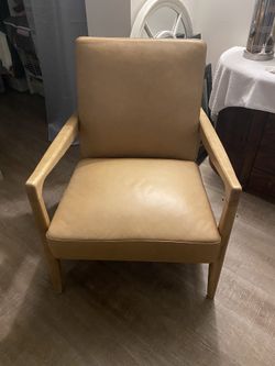 Beautiful Tan Color Faux Leather With Light Wood Decorative Chairs In Very Good Condition$40Spring Valley, CA