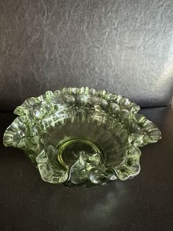 MCM Fenton Colonial Green Thumbprint Ruffled Glass 8" Decorative Bowl 1960s$30Zephyrhills, FL