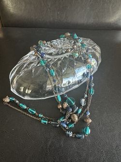 Graduated Glass Beaded 40" Necklace Colors of Cobalt Blue, Turquoise, Green & Plum Metal Link Chain 1940's$40Zephyrhills, FL