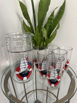 MCM Avira Nautical Sailboat Motif Glass Pitcher & 6 Glasses by AVIR S.p.A Made in Italy 1970's$65Zephyrhills, FL