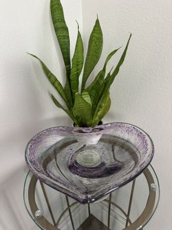 Murano-Style Italian White Cristal Brand Hand-blown Large Heart Pedestal Open Bowl Amethyst & Clear glass Color$75Zephyrhills, FL