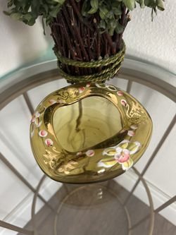 MCM Bohemian Amber glass Ashtray Hand-Painted floral Motif-1960s$30Zephyrhills, FL